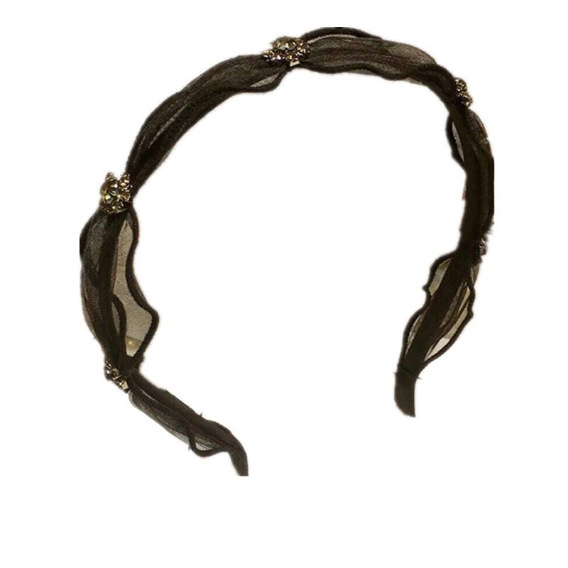 韩国新款气质黑灰太阳花水钻欧根纱发箍头箍韩国发卡简约头饰女