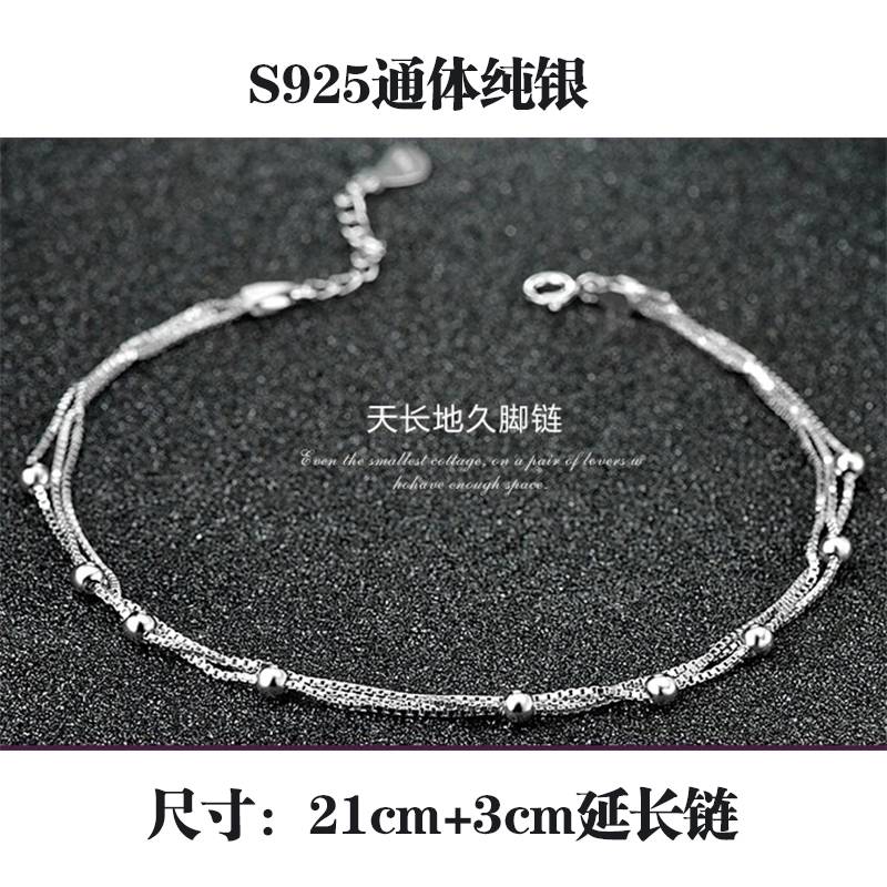 925纯银饰品女韩版时尚脚链圆珠转运韩国铃铛多层送女友生日礼物