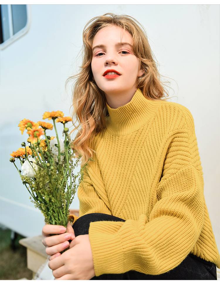 尼班诗2018冬装新款女装上衣宽松长袖高领慵懒毛衣针织衫女