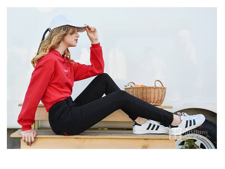 尼班诗2018冬装新款女装黑色高腰修身小脚铅笔牛仔裤女长