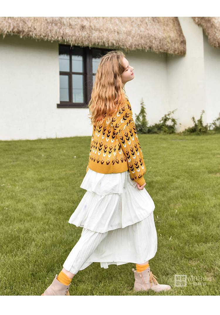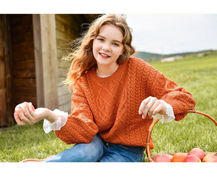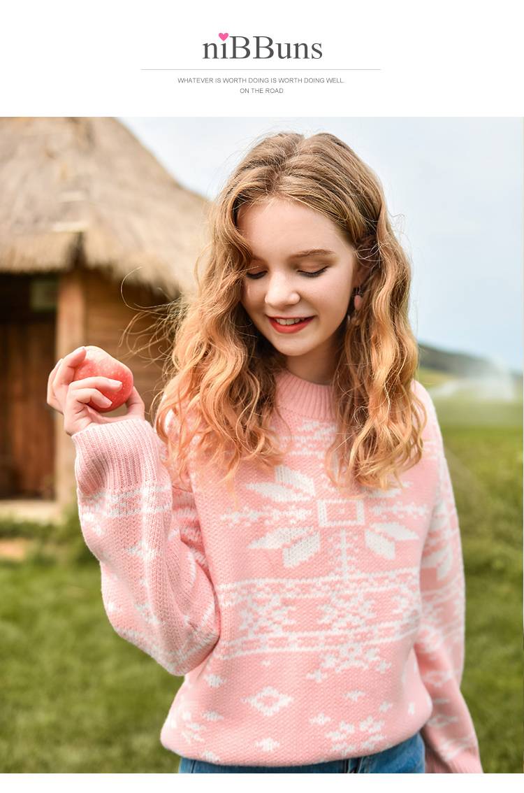 尼班诗2018冬装新款女装上衣圆领套头提花宽松慵懒风毛衣女