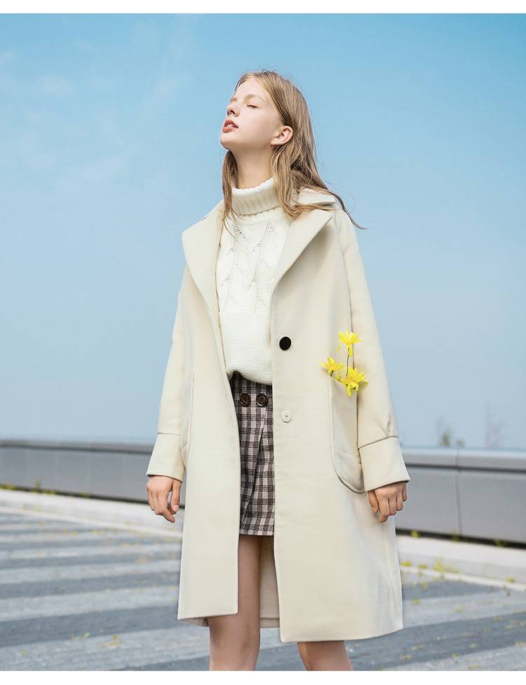 尼班诗2018冬季新款女装中长款呢子大衣长袖毛呢外套宽松女学生