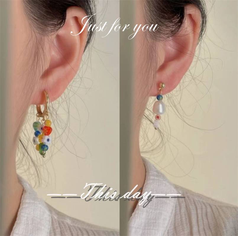 甜美春日彩色手作不对称碎花耳扣耳环可爱耳饰耳环女2023