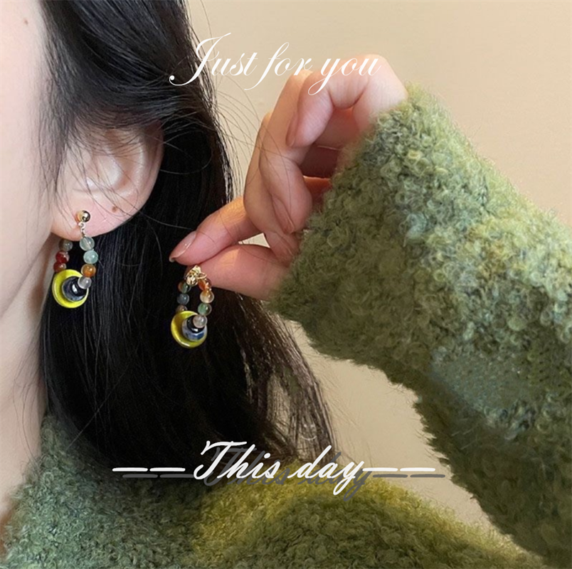 复古民族风平安扣串珠耳环耳饰女春夏出游新款小众设计感彩色