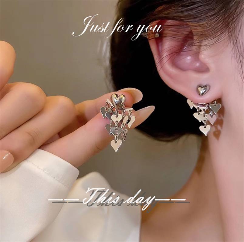 s925银针一款多戴爱心流苏耳环女夸张独特设计感耳钉2023年新款潮