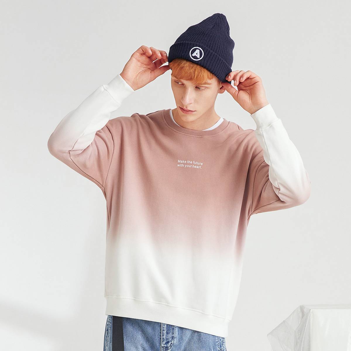 卫衣男渐变色潮牌上衣纯棉2025新款圆领嘻哈宽松春秋外套