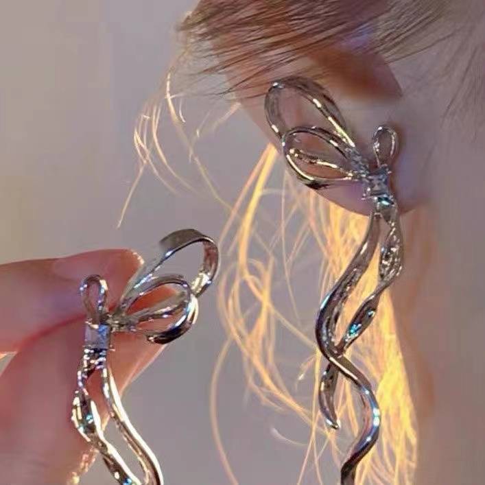 蝴蝶结耳环女小众设计感网红2022年新款潮气质银色耳饰轻奢高级