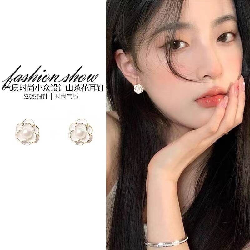 山茶花耳钉女高级感冷淡ins风耳环设计感小众轻奢气质耳饰纯银