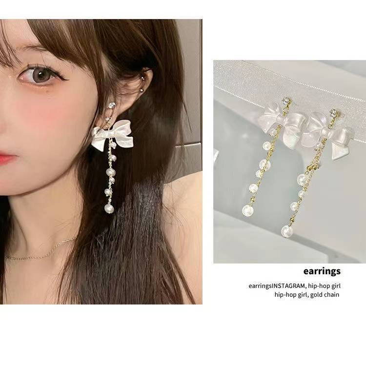 S925银针微镶锆石爱心珍珠流苏耳环女气质百搭时尚耳饰品