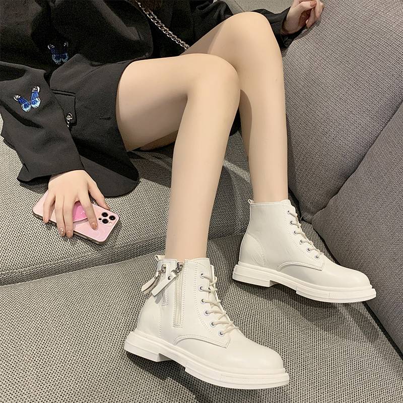 2019新款秋冬马丁靴女时尚真皮方头弹力中筒靴百搭羊皮显瘦女靴子