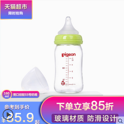 实感宽口径新生婴儿玻璃奶瓶配SS号奶嘴160ml绿色