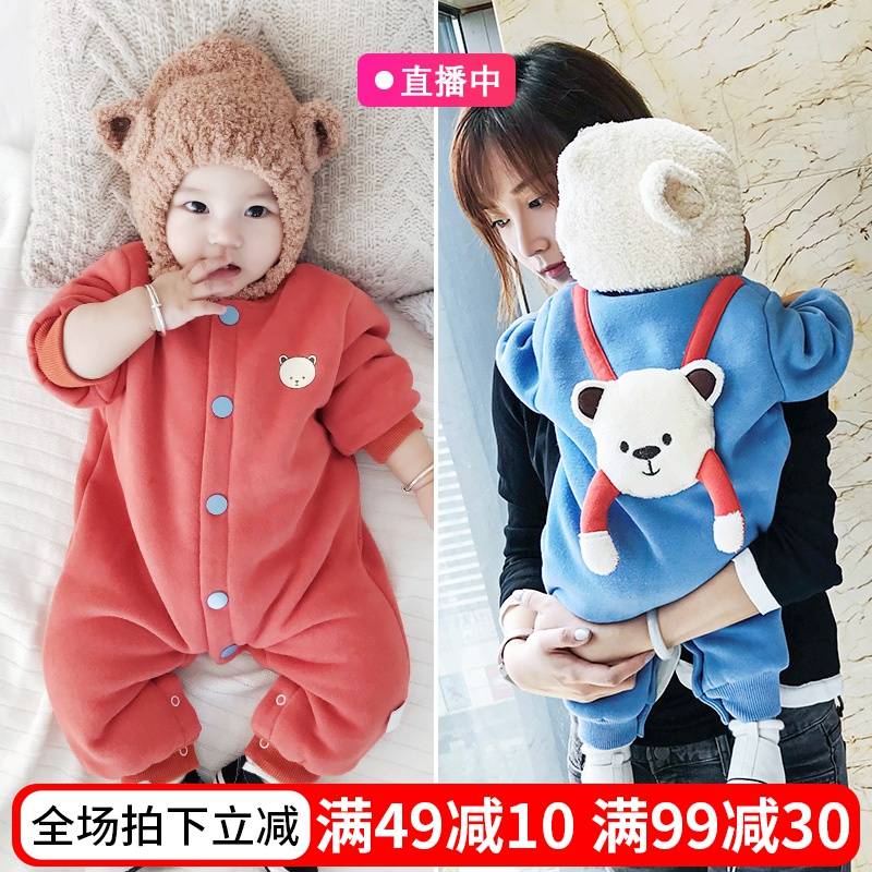 婴儿连体衣薄棉秋冬新生儿衣服加绒外出抱衣初生宝宝一岁冬装小熊