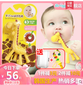 日本长颈鹿牙胶玩具进口婴儿宝宝KJC小鹿咬咬胶可水煮硅胶磨牙棒