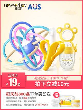 纽因贝婴儿磨牙棒咬咬曼哈顿手抓球宝宝牙胶乐可水煮硅胶摇铃玩具