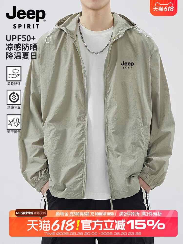 吉普户外冰丝轻薄男士防晒衣夏季新款男装衣服透气防晒服钓鱼外套 99.90 已售:0件