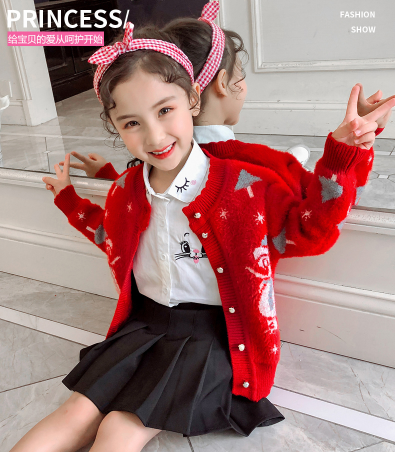 2019新款儿童韩版针织衫小女孩女童装女大童开衫中大童洋气潮毛衣