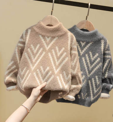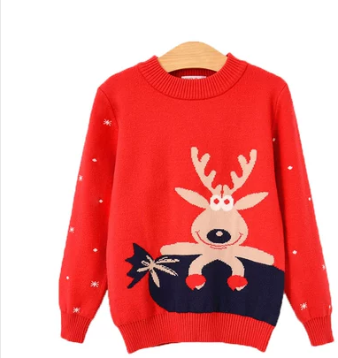 2018童装新款秋冬女童双层加厚毛衣儿童套头宝宝针织衫圣诞打底衫