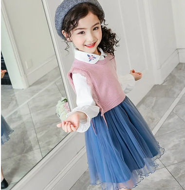 女童套装2019春秋季新款童装韩版儿童毛衣背心连衣裙中大童两件套
