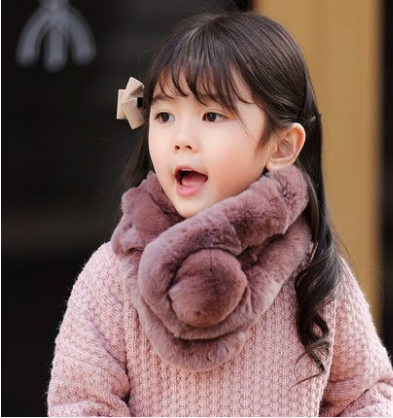 秋冬季獭兔毛宝宝可爱小孩围巾围脖套儿童冬天保暖男女童皮草围巾