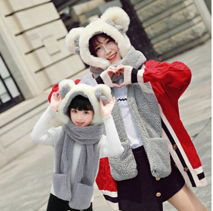 帽子围巾手套三件一体冬季韩版儿童女童加厚保暖双层冬天亲子套装