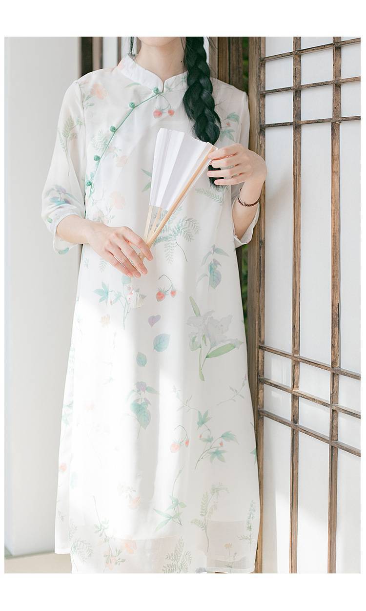 2022年秋季新印花中长款旗袍中式改良日常复古显瘦连衣裙