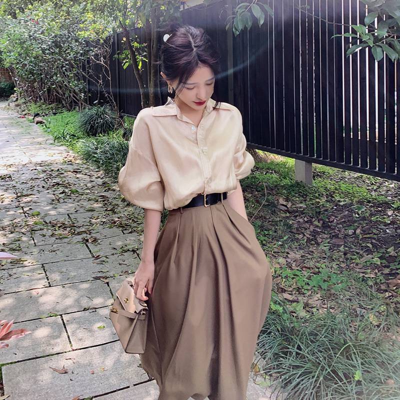 春季新款女装轻奢冷淡风高级感套装法式名媛气质长裙衬衫连衣裙子