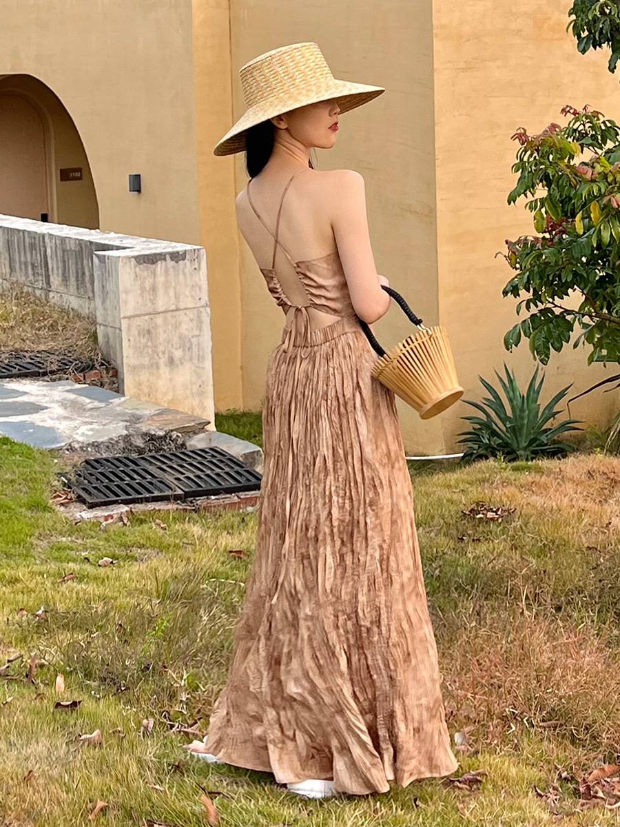 茶歇法式小众吊带连衣裙油画风仙气超仙森系初恋收腰裙子别致长裙