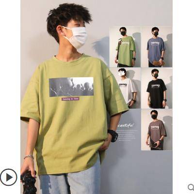 港风t恤男宽松衣服男生短袖ins潮夏季五分袖男装潮流潮牌韩版上衣