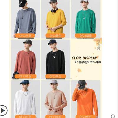 纯棉男士长袖t恤秋冬季潮流宽松纯白色卫衣打底衫秋衣男装上衣服
