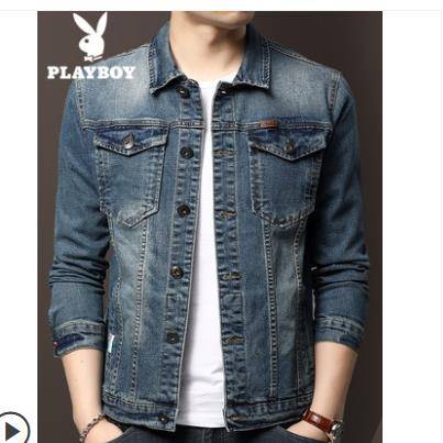 花花公子男士牛仔外套潮牌欧美街头上衣2020春秋装潮加绒宽松夹克