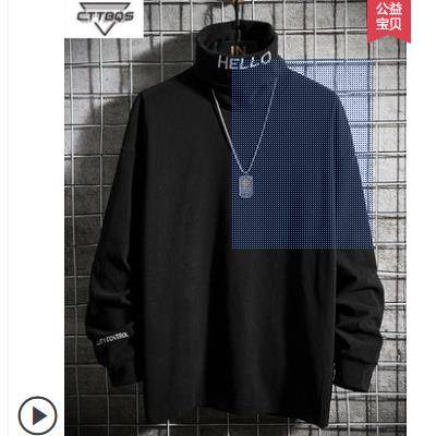 秋冬高领长袖T恤打底衫男潮宽松加绒大码ins卫衣男士内搭秋装上衣