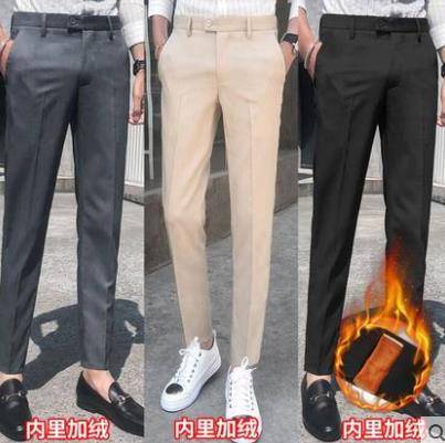 西裤男修身韩版潮流秋冬加绒男士休闲长裤直筒黑色西装裤子男坠感