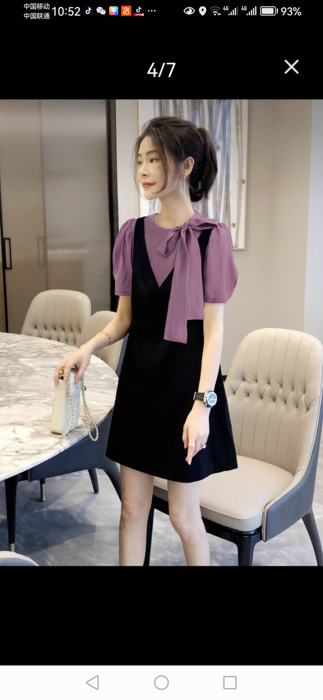 2023夏季纯色拼接a字裙淑女显瘦雪纺连衣裙