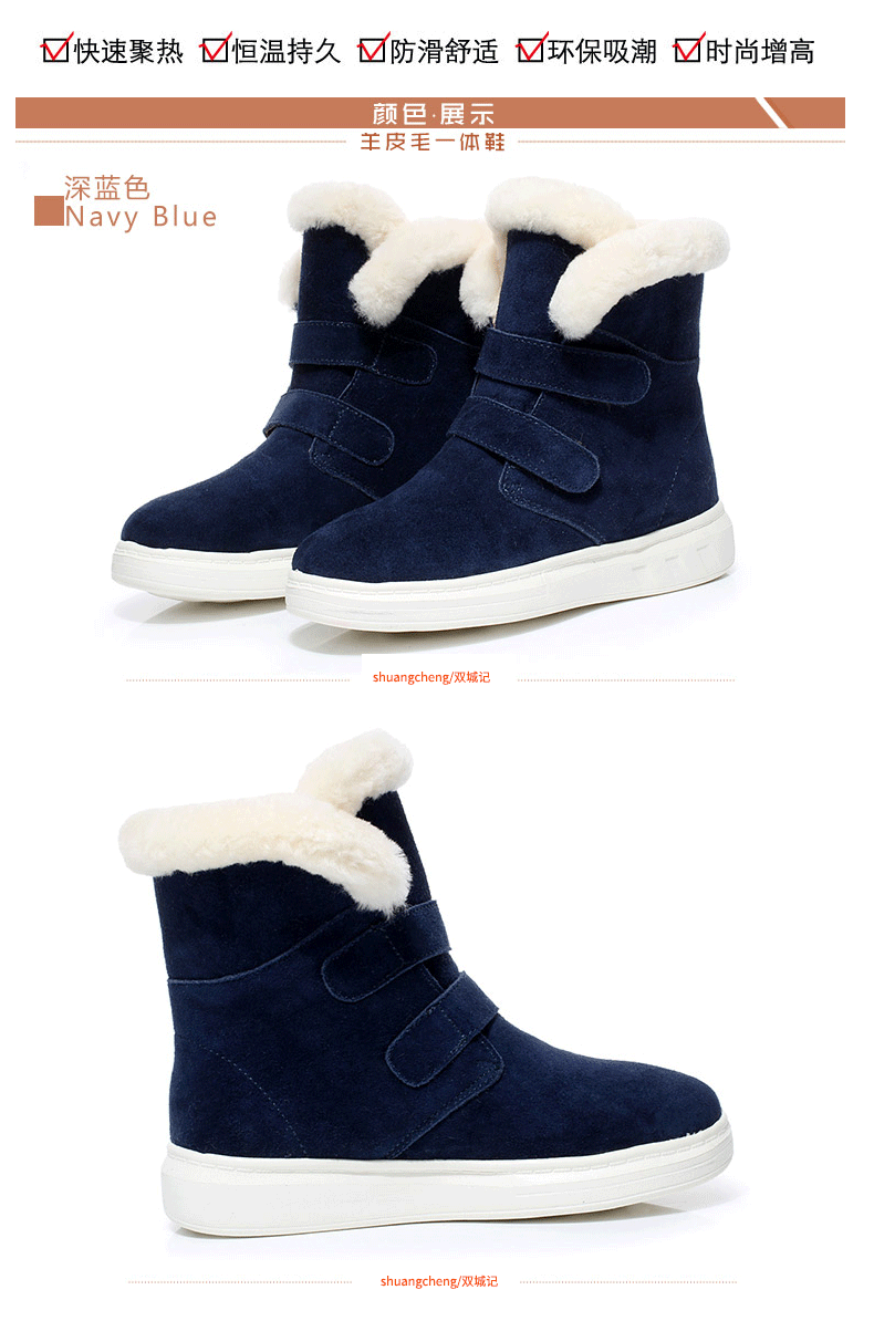 棉鞋女2018羊皮毛一体雪地靴女中筒加厚平底冬季保暖加绒女棉靴子 65.00 已售:0件