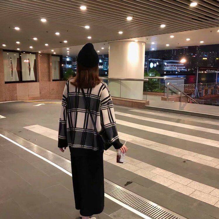 格子毛线针织衫黑白灰韩版白色卡其色长袖外套 100.00 已售:0件
