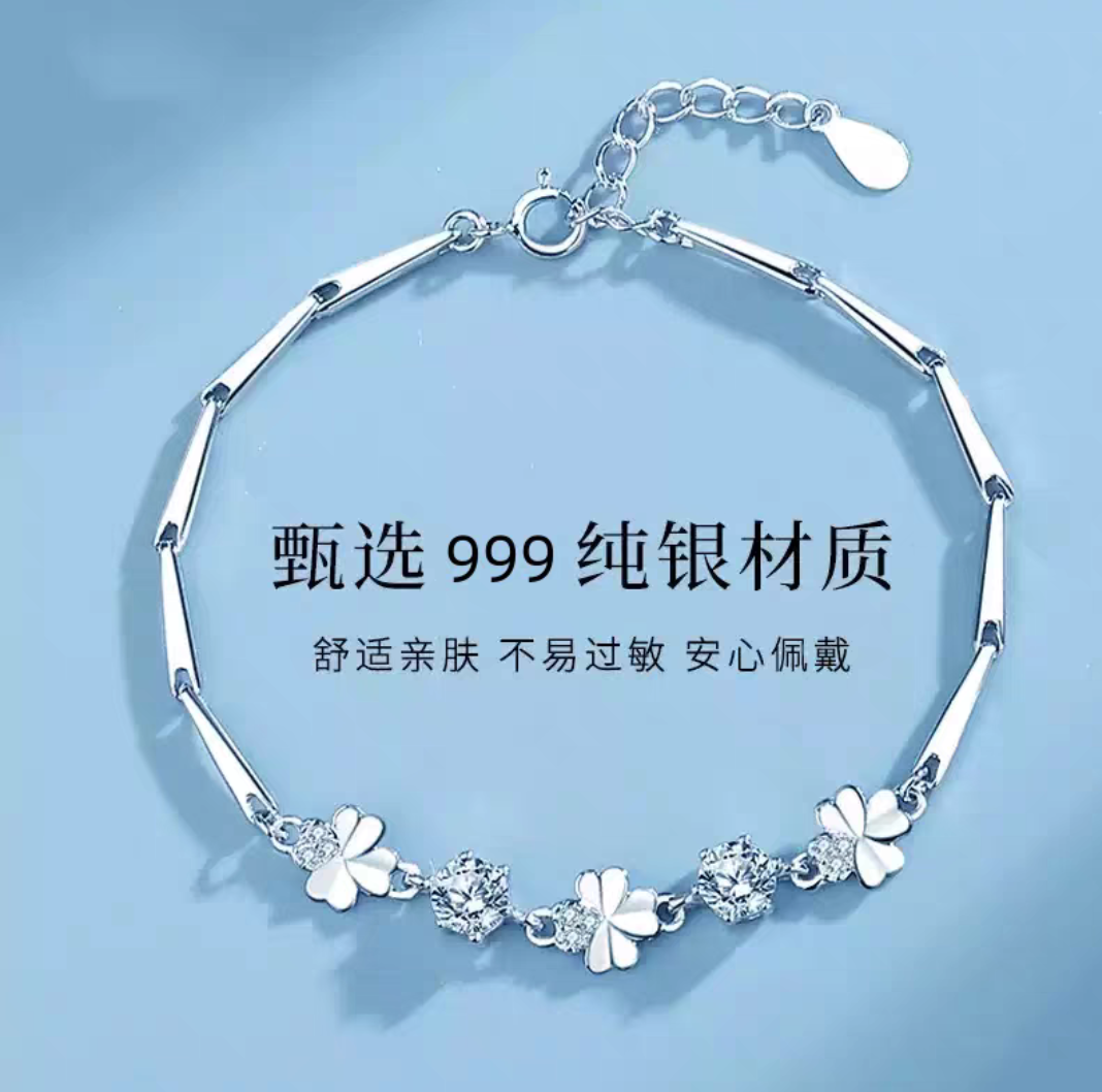 轻奢小众幸运四叶草纯银手链精致送闺蜜情人节女朋友节日生日礼物 48.88 已售:0件