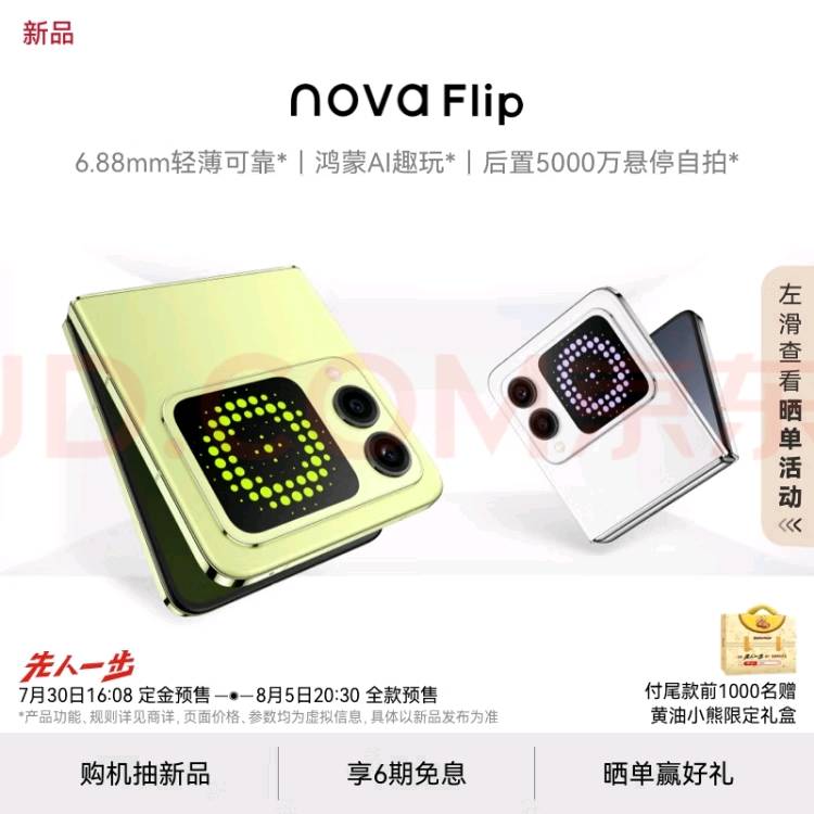 华为 nova Flip小折叠 12GB 256GB 向新绿 6.88mm轻薄可靠 鸿蒙AI趣玩 后置5000万悬停自拍