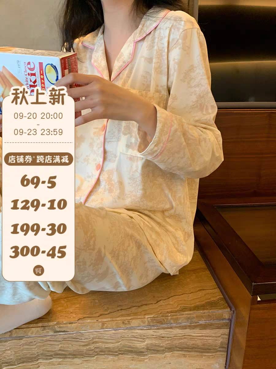长袖翻领粉扣印花短袖睡衣外穿宽松家居服女春秋