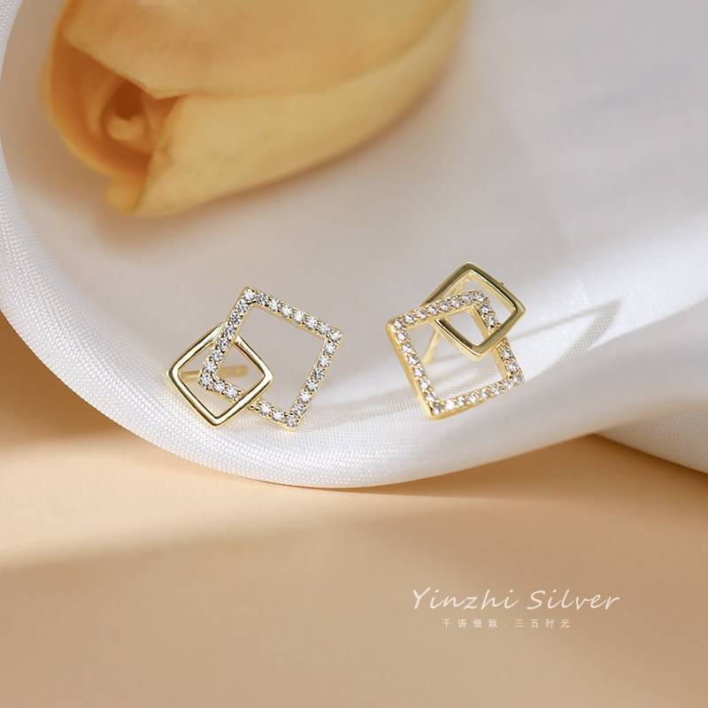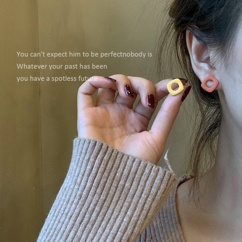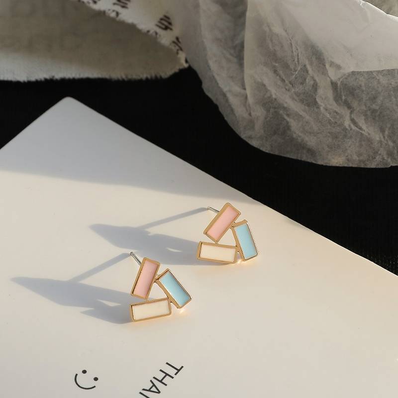 925银针几何撞色方块耳钉女小巧简约森系小众设计感网红耳环春夏