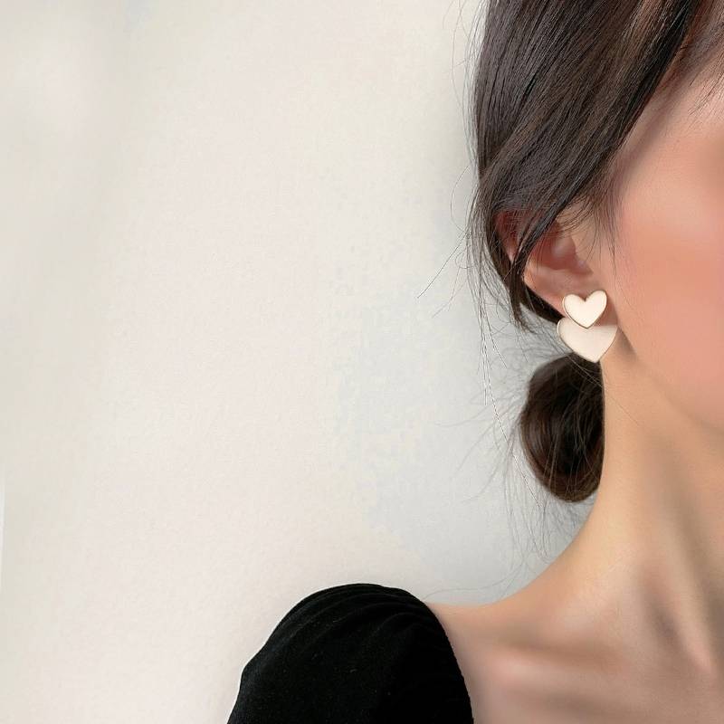 白色爱心耳环少女2020年新款潮气质韩国东大门网红2021年耳钉耳饰