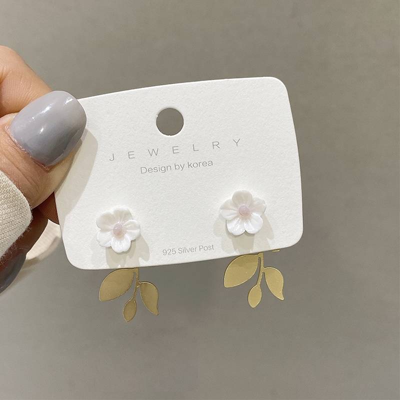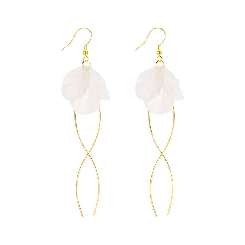 2021年新款亚克力贝壳花朵耳环女潮韩国气质超仙白色花瓣耳坠耳饰