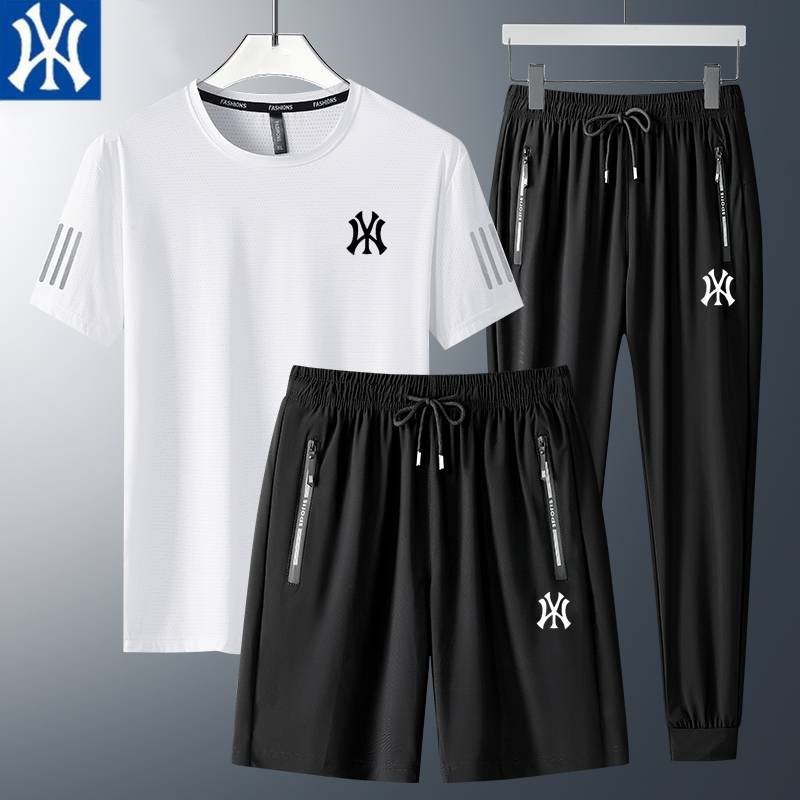 奥特莱斯冰丝运动套装男夏季2023新款宽松休闲薄款t恤速干三件套