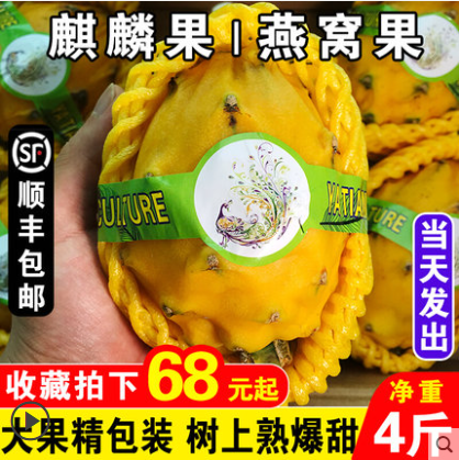 麒麟果燕窝果新鲜水果甜糯多汁热带特产孕妇非黄色火龙果顺丰包邮