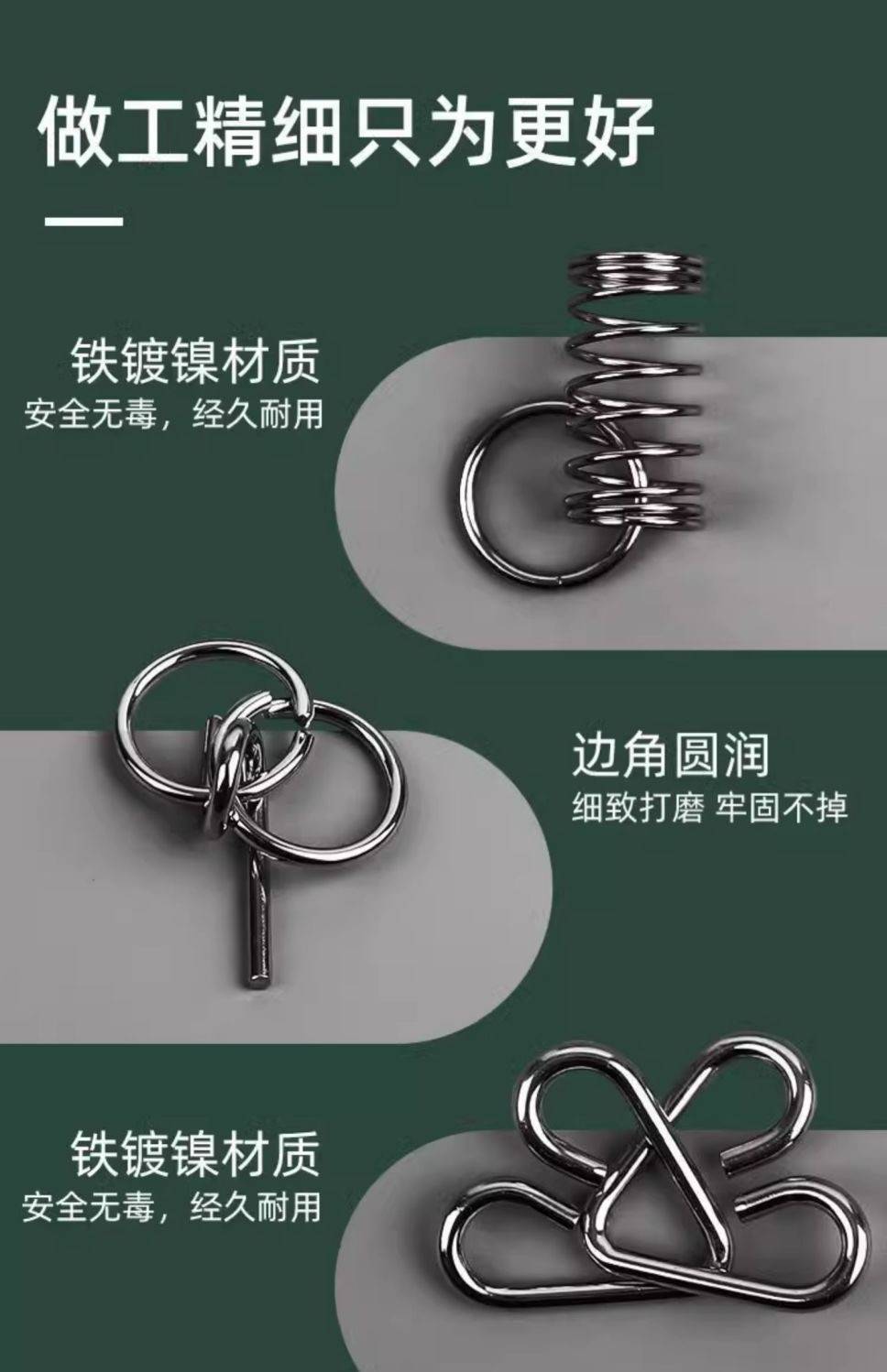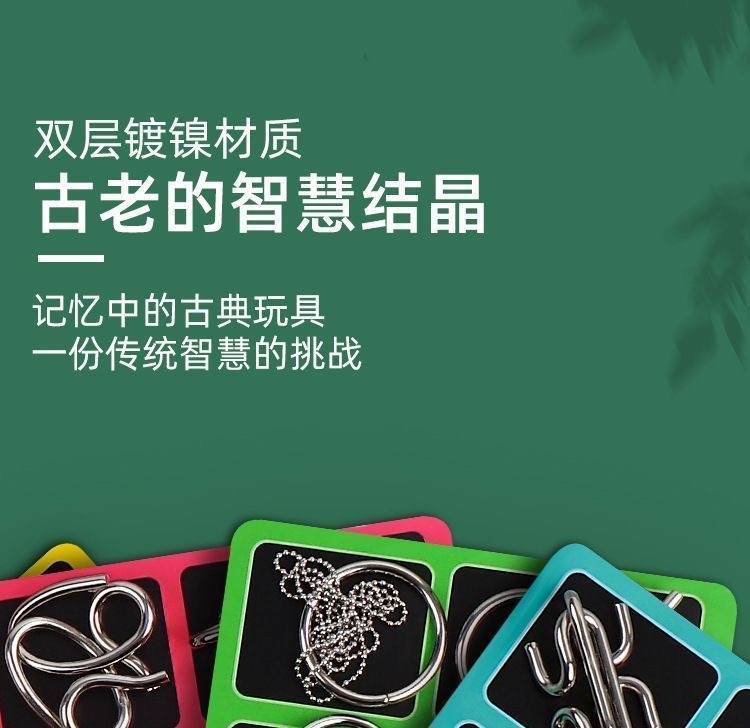 智力解扣环48件套九连环鲁班铁儿童益智铁环玩具孔明锁逆向思维