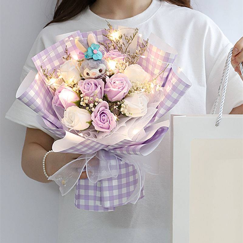 创意满天星干花花束香皂花送女朋友闺蜜生日礼物玫瑰花
