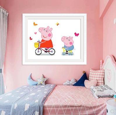 十字绣2018新款线绣小猪佩奇卡通可爱儿童卧室小幅简单绣简约现代