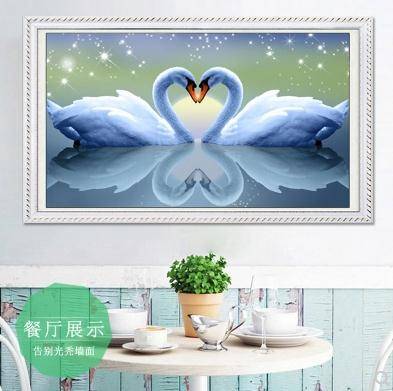 十字绣2018新款线绣客厅卧室房间小画天鹅湖心心相印简单小幅满绣