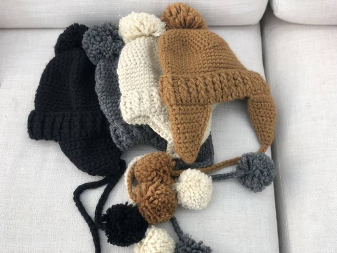 手工钩针毛球针织帽女保暖护耳可爱纯色毛线帽 30.00 已售:0件