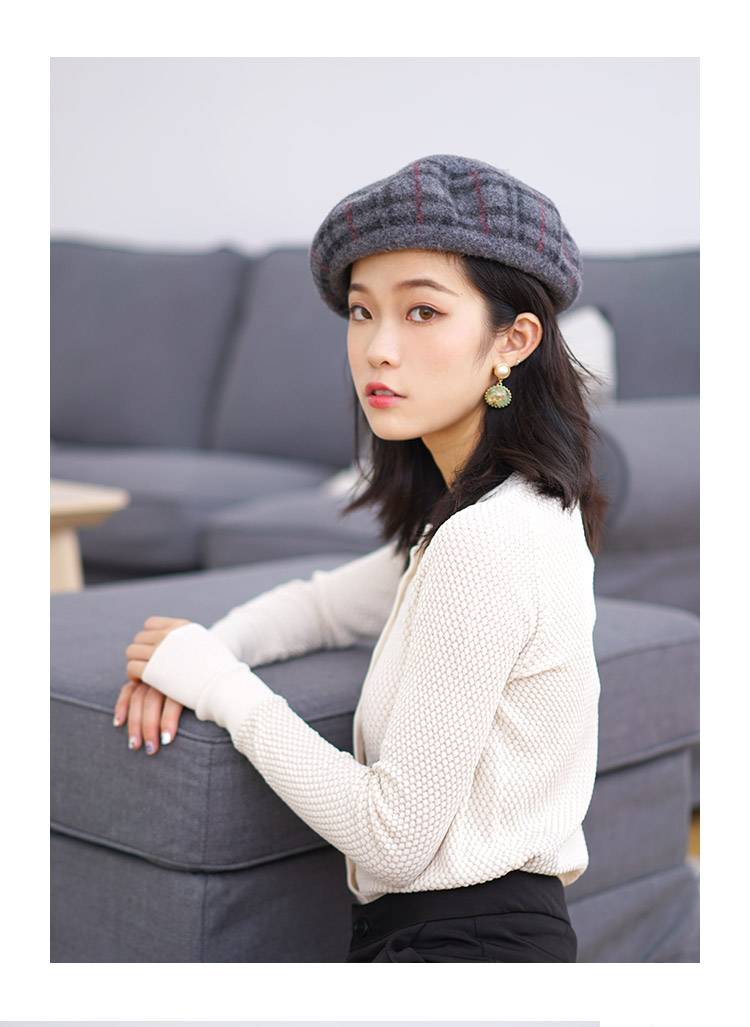 优品日系菱形格子羊毛呢贝雷帽 32.00 已售:0件