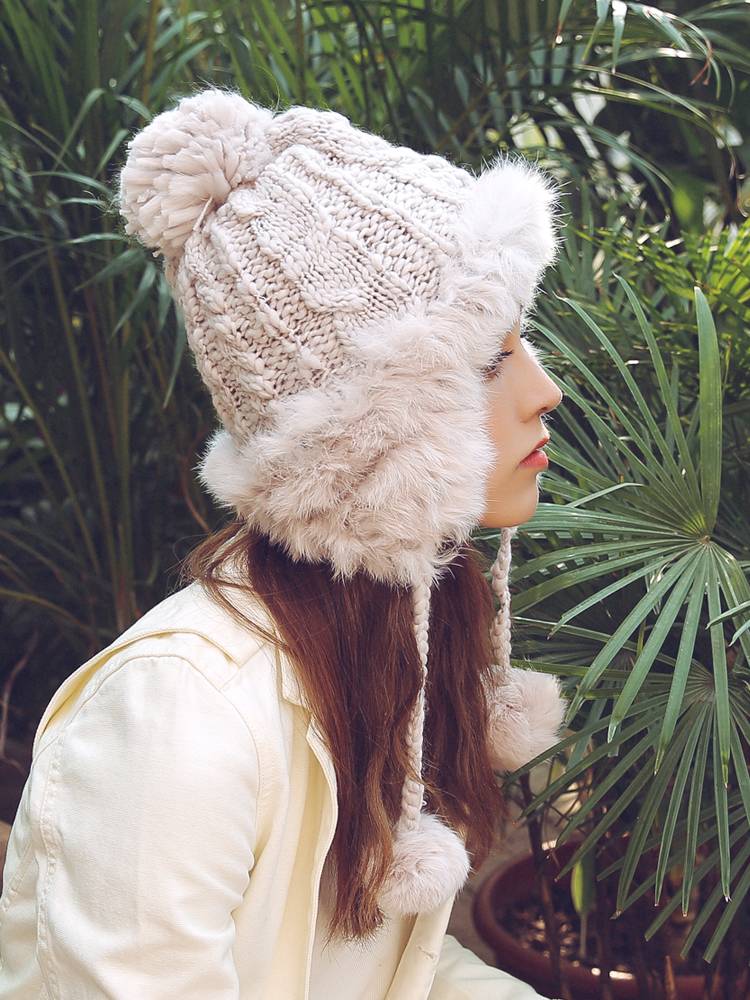 可爱兔毛双层加厚护耳毛线帽 32.00 已售:0件